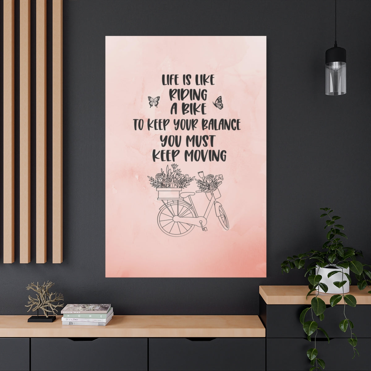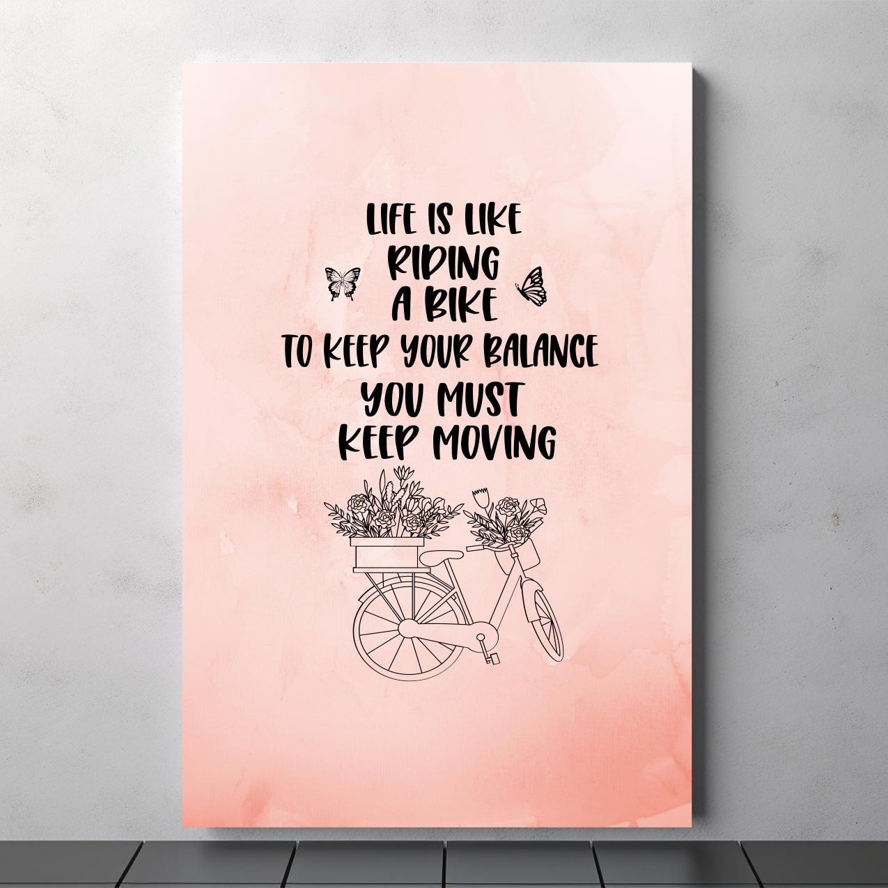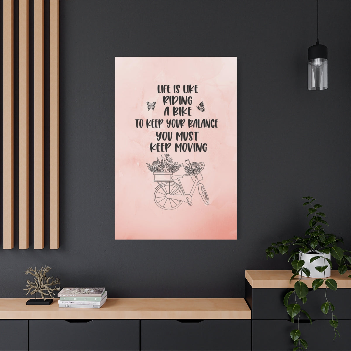 Motivational Bicycle Quote Pink Canvas Wall Art