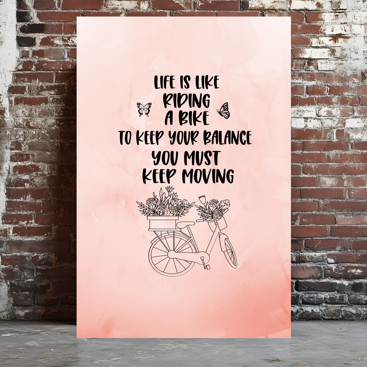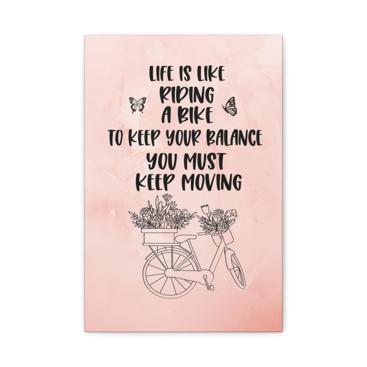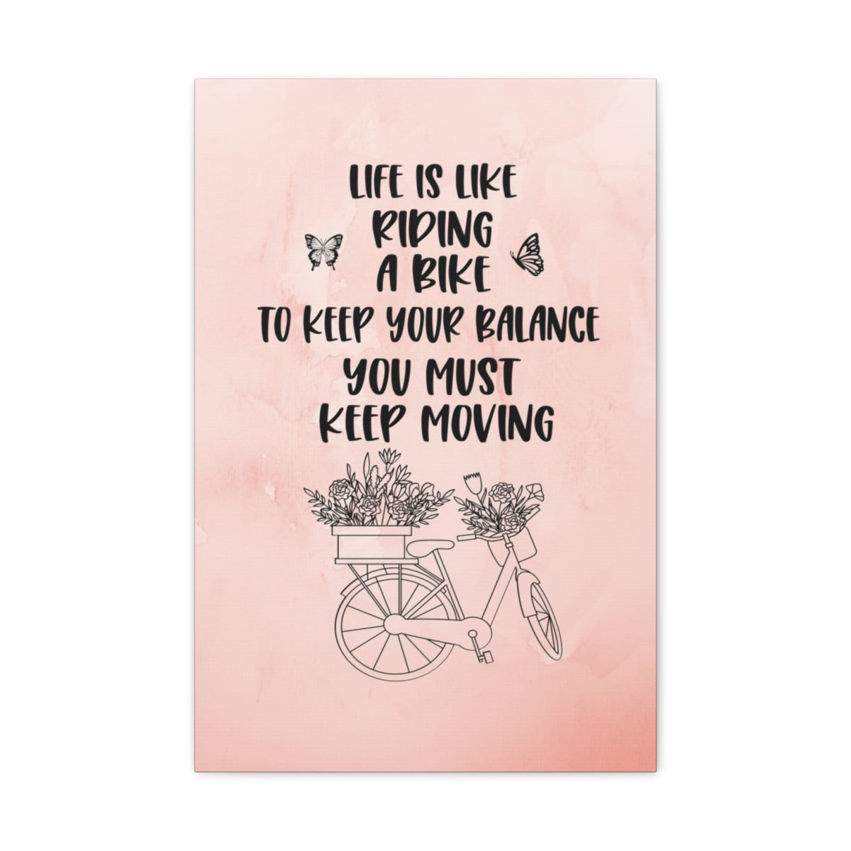 Motivational Bicycle Quote Pink Canvas Wall Art