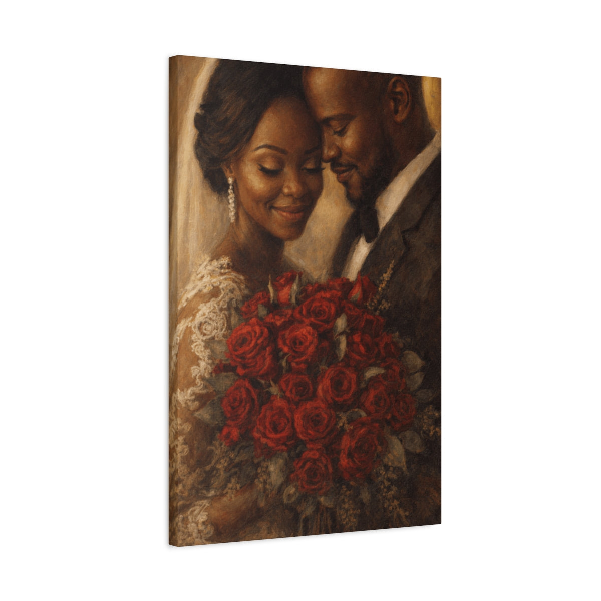 🎨 Capture the romance and elegance of your special day with our stunning Oil Painting Style Canvas. This beautiful artwork features a tender embrace between a couple, with the bride holding an exquisite bouquet of vibrant red roses. The intricate lace details of her gown add a timeless charm, perfect for preserving your cherished wedding memories.