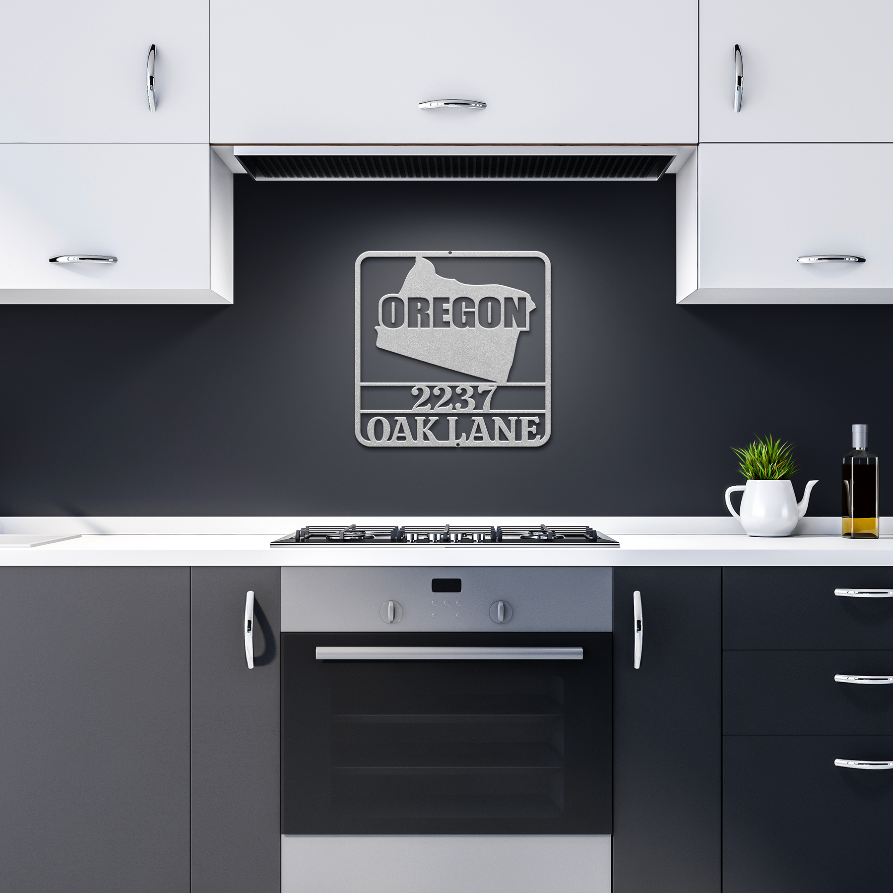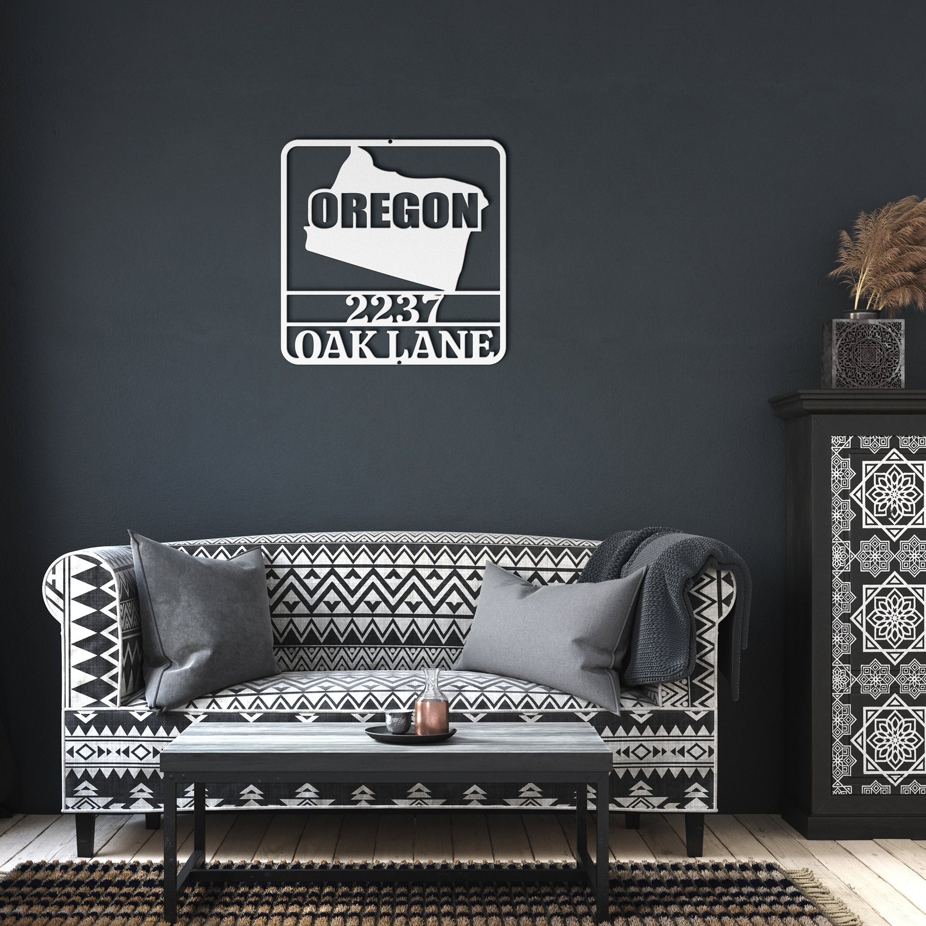 πŸ”Ή **Visual Design:** This sign features the recognizable Oregon outline enclosed within a clean square frame, providing a distinctive backdrop for displaying your address clearly and prominently.