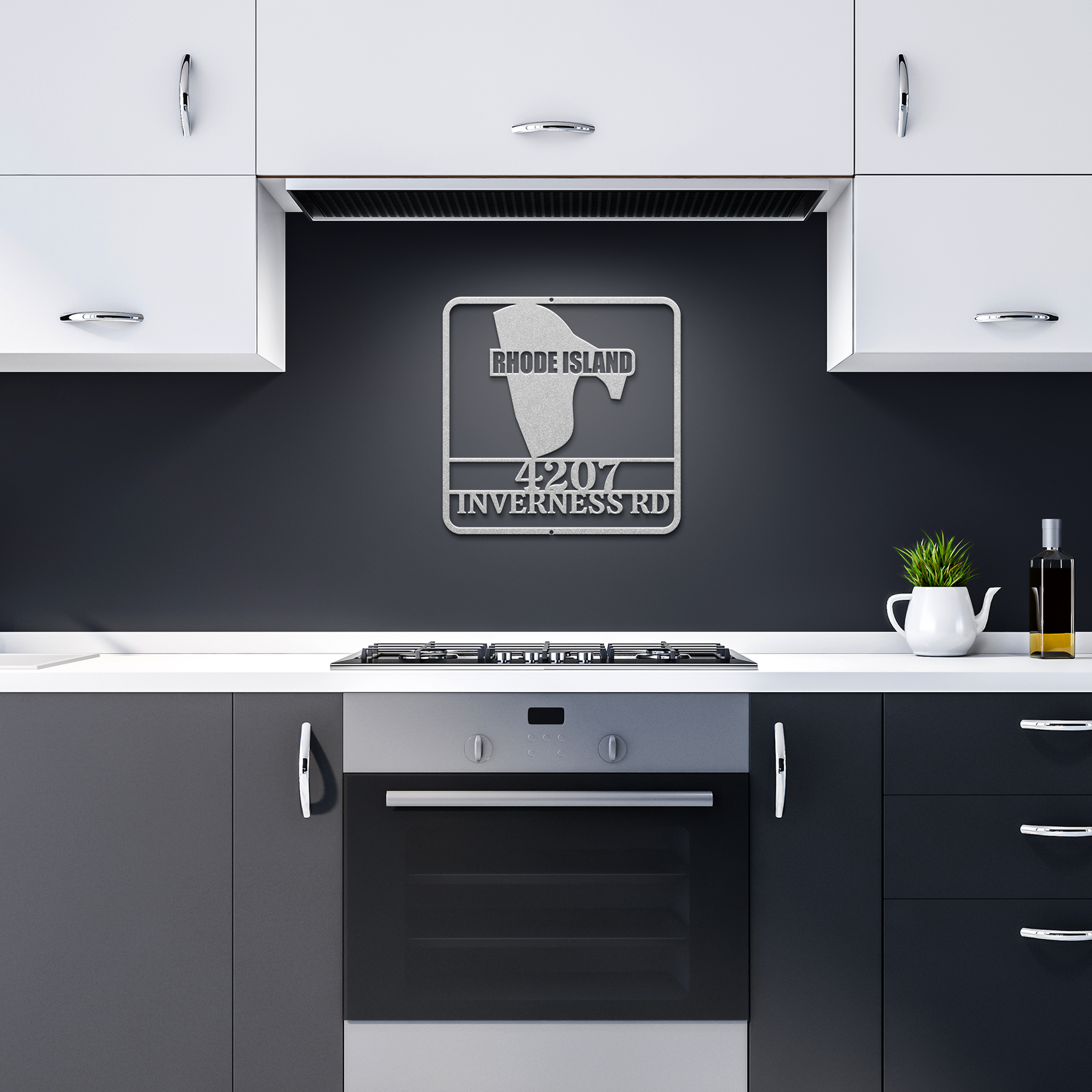 Rhode Island Custom Outdoor Metal Address Sign - Personalized Home Decor
