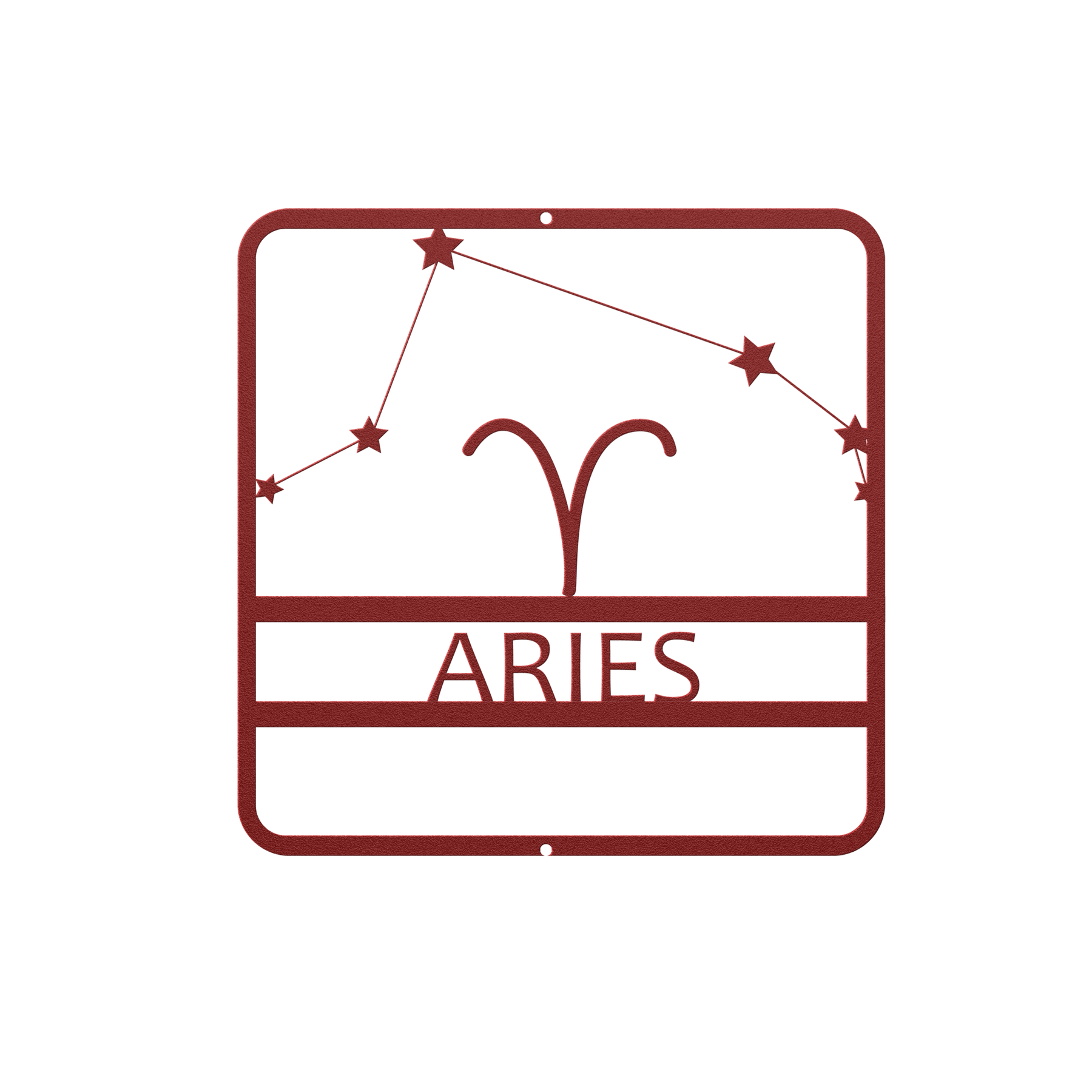 ✨ Transform any space with our stunning metal sign that seamlessly blends celestial beauty and modern elegance! Made from durable 18 gauge steel, this finely crafted sign features an intricate Aries constellation design, perfect for astrology enthusiasts. Powder-coated for a flawless finish, choose from 5 vibrant colors: Black, Red, White, Copper, or Silver. The sign showcases a sophisticated square frame with the Aries symbol and constellation, adding a mystical ambiance to any room.