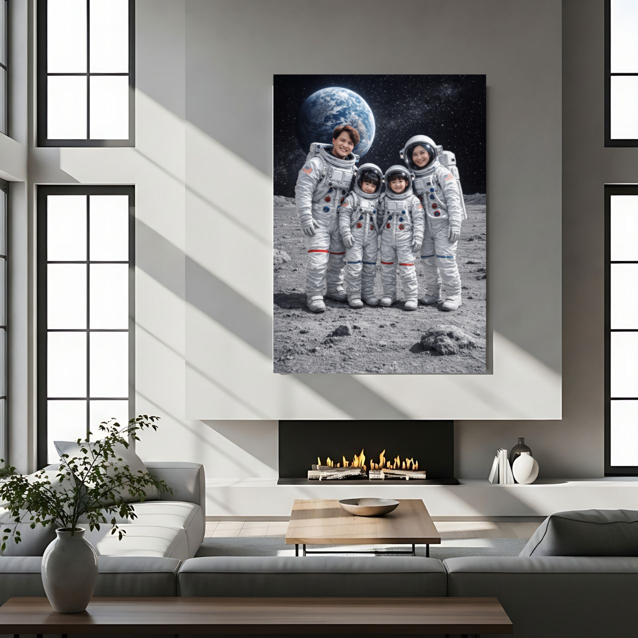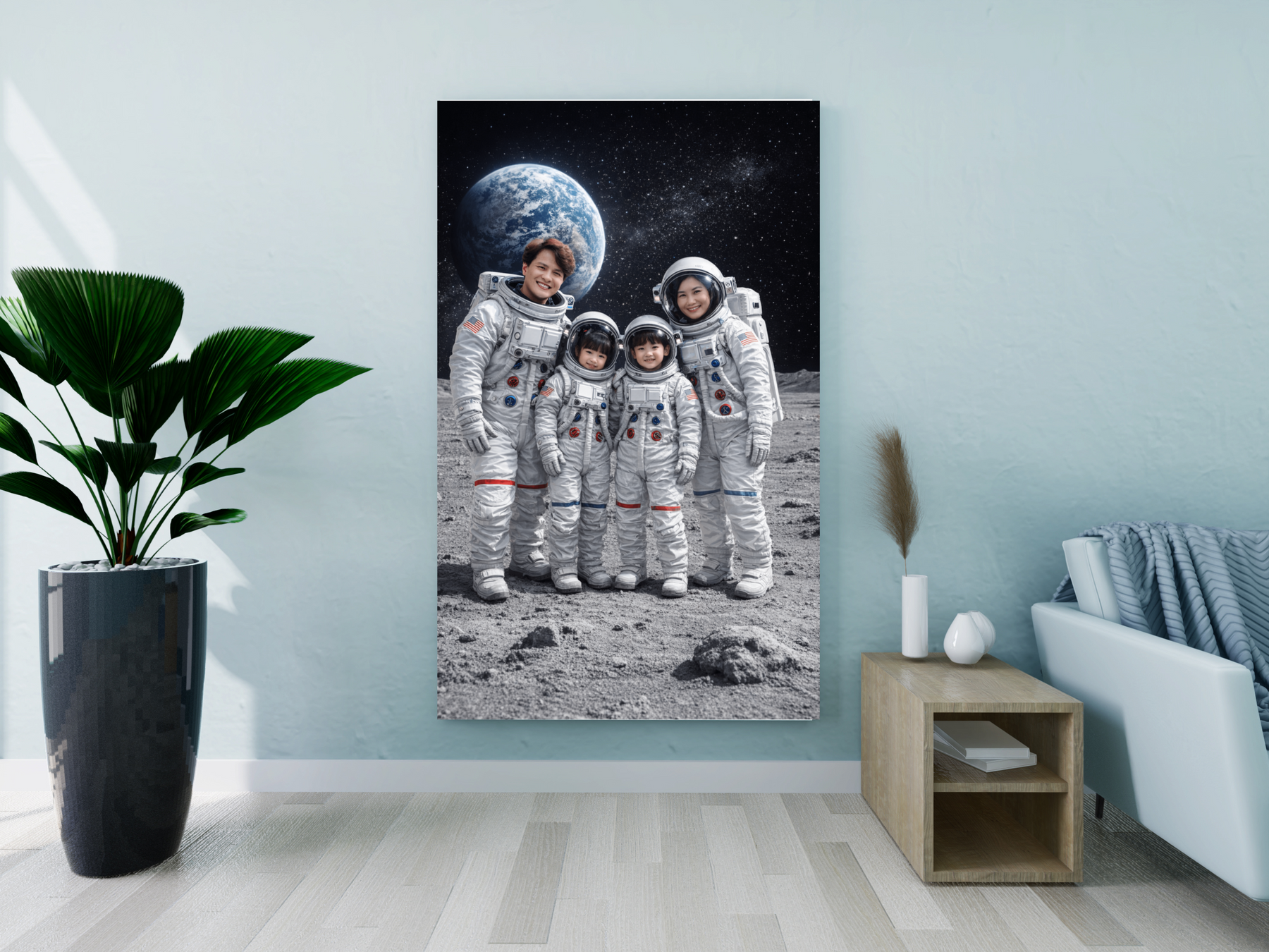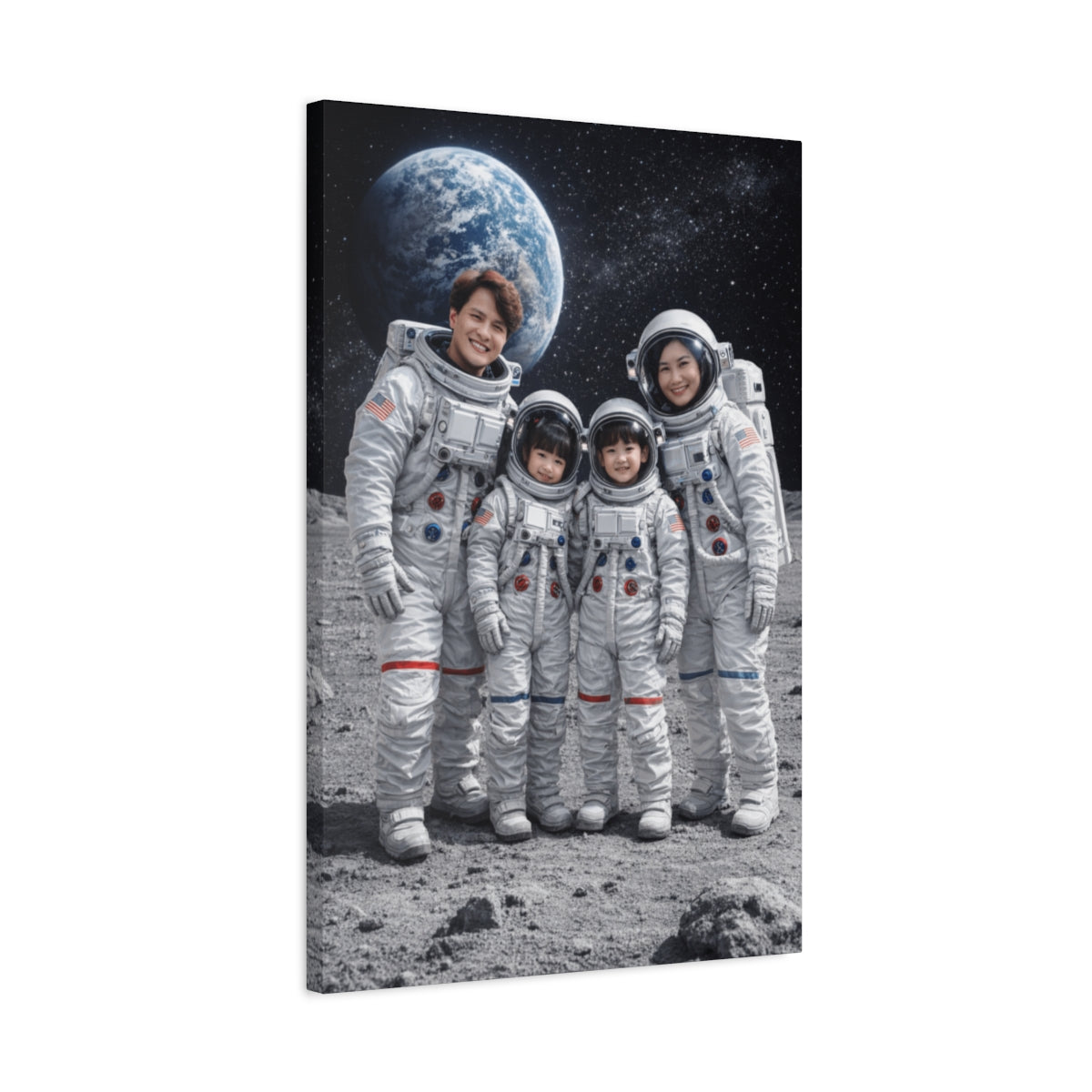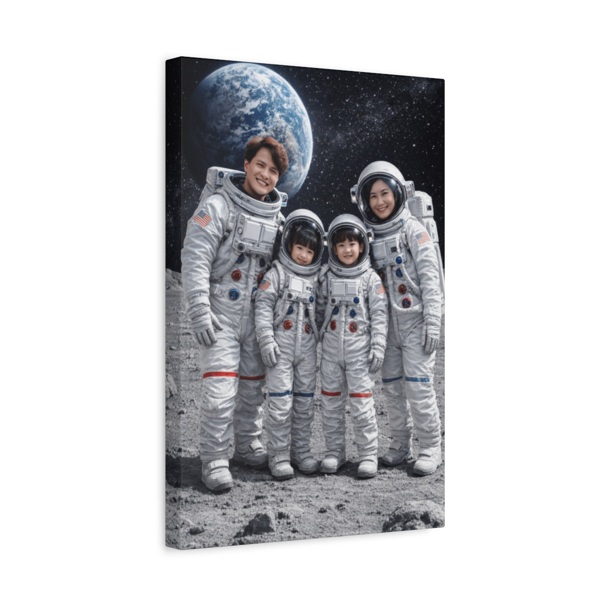 🌟 Unveil the magic of space with the Custom Family Astronaut Portrait Canvas! This unique wall art transforms your family photo into a captivating astronaut scene, set against the vastness of space with Earth looming in the background. Perfect for space enthusiasts, this personalized canvas captures your family as astronauts, standing on a textured lunar surface — a truly out-of-this-world decoration!