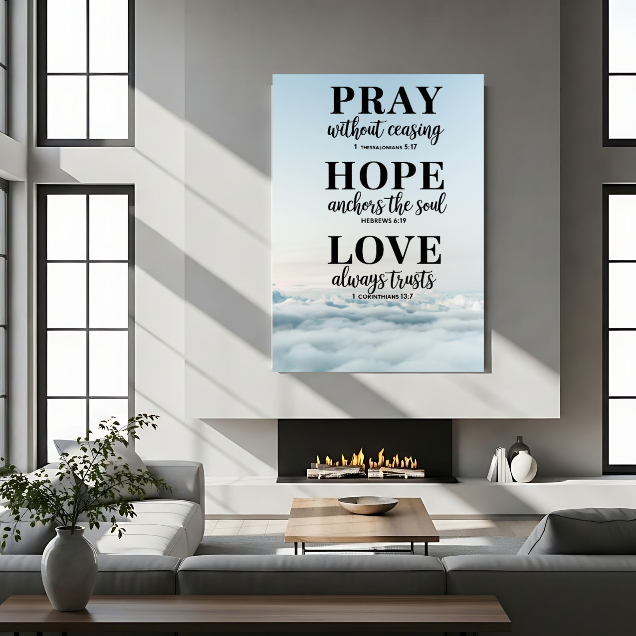 This stunning canvas print features a breathtaking scene of fluffy, serene clouds against a soft gradient sky. Display the essence of inspiration with this beautifully designed art piece, perfectly capturing a sense of faith and hope.