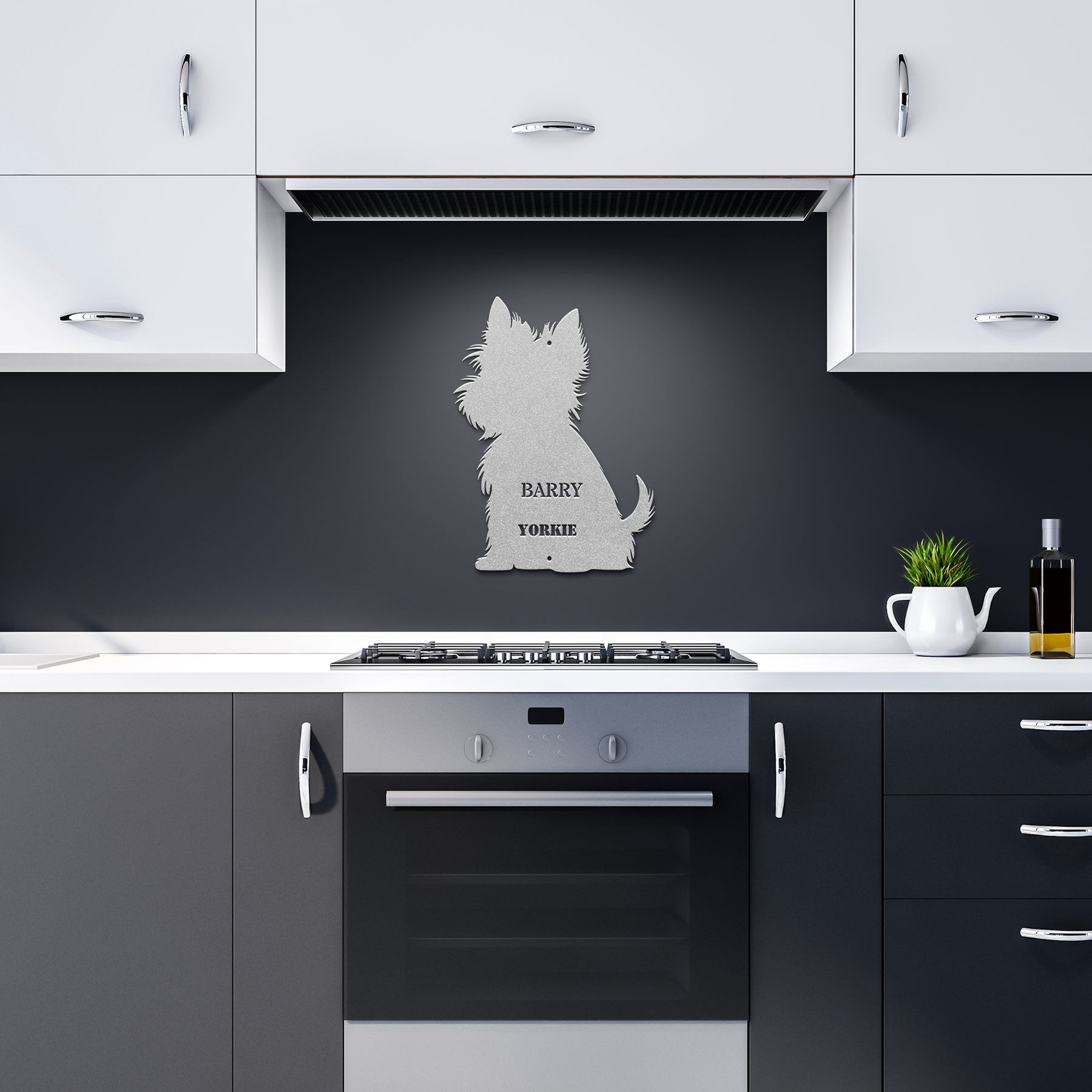 🐾 Bring charm and personality to your home decor with this exquisite Yorkie Metal Wall Art. Perfect for dog lovers, the elegant steel silhouette features the text 'BARRY' and 'YORKIE', making it a unique centerpiece for any room.